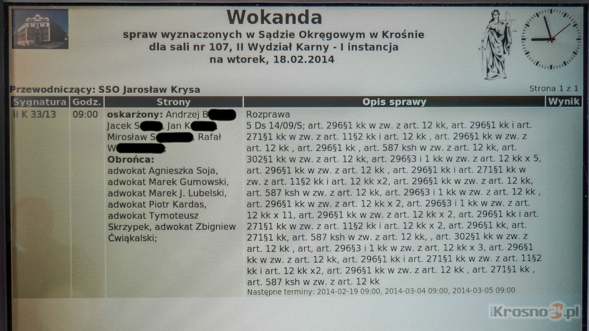 Wiadomość Ruszył proces byłych prezesów KHSPięciu prezesów i dyrektorów Krośnieńskich Hut Szkła Krosno SA stanęło przed sądem. Według prokuratury, przekraczali swoje uprawniania bądź nie dopełniali obowiązków, a swoim działaniem wyrządzili szkody na ponad 88 mln zł. W konsekwencji doprowadzili hutę do upadku. Tą od 2009 roku z powodzeniem zarządza syndyk. W lipcu ubiegłego roku Prokuratura Okręgowa w Krośnie zakończyła śledztwo w sprawie nieprawidłowości w zarządzaniu Krośnieńskimi Hutami Szkła Krosno SA. Trwało blisko 5 lat. Zawiadomienie o podejrzeniu popełnienia przestępstwa złożyli związkowcy, ale to nie na jego podstawie całe śledztwo ruszyło. Faktem jednak jest, że przy okazji badania całej sprawy biegli doszukali się innych okoliczności, które stały się podstawą postawienia zarzutów. We wtorek (18.02) w Sądzie Okręgowym w Krośnie ruszył proces byłych prezesów KHS. Prokuratorzy Wiesława Basak oraz Robert Warunek przez blisko dwie godziny odczytywali ponad 40-stronicowy, liczący 20 punktów akt oskarżenia. Skierowano go przeciwko 5 osobom: prezesom, członkom zarządu, dyrektorom ekonomicznym i handlowym KHS w latach 2002-2009. Najwięcej, bo 19 zarzutów usłyszał Jacek S. - najpierw wiceprezes, dyrektor do spraw ekonomiczno-finansowych, potem przez krótki czas prezes zarządu KHS. 10 zarzutów przedstawiono Andrzejowi B., 11 - Mirosławowi S., 6 Rafałowi W., 3 - Janowi K. W toku postępowania prokuratorskiego oskarżeni nie przyznali się do zarzucanych im czynów. Część składała wyjaśnienia, że to były działania w tamtym czasie uznane za słuszne. Główny oskarżony odmówił składania wyjaśnień. ![]() Oskarżonych będą bronić prawdziwe sławy, m.in. Zbigniew Ćwiąkalski - były minister sprawiedliwości czy profesorowie: Piotr Kardas, Marek Lubelski i Marek Gumowski Pierwszego dnia procesu na sali sądowej stawili się wszyscy oskarżeni. Ich interesy mają reprezentować prawdziwe sławy polskiej palestry. Wśród nich Zbigniew Ćwiąkalski - były minister sprawiedliwości czy Piotr Kardas - jeden z największych autorytetów z zakresu prawa karnego. Na wniosek oskarżonych sąd nie zezwolił na publikowanie ich wizerunków, a przy imionach może pojawiać się jedynie pierwsza litera nazwiska. Według prokuratury, oskarżeni przekraczali swoje uprawniania bądź nie dopełniali obowiązków, poświadczali też nieprawdę. Swoim działaniem spowodowali, że KHS straciły ponad 88 mln zł. • Ponad 34 mln zł KHS straciły na transakcjach związanych z opcjami walutowymi. Zawierano je wbrew stanowisku Rady Nadzorczej, przekraczały potrzeby spółki. Transakcje te doprowadziły w 2008 do załamania finansowego, co skutkowało ogłoszeniem upadłości spółki. • Kolejne 25 mln zł KHS straciły w wyniku nieprawidłowego zarządzania magazynami. Według ustaleń prokuratury, nie przeprowadzono właściwie inwentaryzacji, zezwalano na przechowywanie wyrobów zalegających w magazynie kilka lat, w nadmiernej ilości i w złych warunkach. Blisko połowa zapasów magazynowych była w bardzo złym stanie, potrzebna była potem ich wysoka przecena. • Brakowało odpowiedniego nadzoru nad Regionalnymi Centrami Dystrybucji w Poznaniu, Wrocławiu, Mińsku Mazowieckim, Gdyni i Tarnowie - efekt 9,6 mln zł straty. • 9 milionów straty przyniosła działalność spółki córki KHS w Moskwie, dostarczającej wyroby Krosna na tamtejszy rynek. Kolejne dostawy wysyłano, mimo braku zapłaty za poprzedni towar. Należności nie były windykowane. • Za budynek administracyjny w Mińsku Mazowieckim spółka płaciła podatek od nieruchomości wyliczony na podstawie powierzchni wynoszącej ponad 19 tys. metrów kwadratowych, gdy w rzeczywistości miała ona zaledwie 1,2 tys. metrów. Spółka straciła na tym 2 mln zł. • Nie windykowano przeterminowanych należności - kolejny milion strat. • Dla firmy w Hong Kongu wykonano unikatowy produkt - szklane kule. Zamówienie zrealizowano bez umowy gwarantującej odbiór i uregulowanie płatności, w wyniku czego majątek spółki uszczuplił się o 600 tys. zł. • Nie dopełniono obowiązków wynikających z zapisów umowy przedwstępnej z firmą Tesco, zainteresowaną zakupem nieruchomości po zakładzie nr 1 przy ul. Grodzkiej w Krośnie. Transakcja nie doszła do skutku, bo spółka nie uzyskała dokumentu z banku, który umożliwiałby zwolnienie z zabezpieczeń hipotecznych. KHS straciły na tym nieco ponad milion złotych - była to kara umowna wraz z odsetkami. • Śledztwo wykazało też brak rzetelnego rozliczenia podatku VAT z firmami zagranicznymi i krajowymi. Okazało się, że zawyżano wartości sprzedaży i zysków, akceptowano przekazywanie do księgowości niekompletnej dokumentacji, co w przypadku zagranicznych kontrahentów powodowało traktowanie sprzedaży jako krajowej, opodatkowanej wyższą stawką podatku VAT - szkody wyniosły blisko 500 tys. zł. • Pracownikom polecano sporządzanie fikcyjnych faktur w celu zawyżenia wartości sprzedaży klientów zagranicznych - szkody na kolejne 265 tys. zł. W przypadku transakcji krajowych zdarzało się, że pracownicy mieli polecenie wystawiania faktur sprzedaży, które po kilku miesiącach w całości korygowano. Celem było zawyżenie wartości sprzedaży w raportach kwartalnych, w konsekwencji zawyżenia zysków firmy. • Na zatrudnieniu Zdzisława S. – udziałowca i przewodniczącego Rady Nadzorczej firma straciła 250 tys. Nie miał określonego zakresu obowiązków, a jego końcowe wynagrodzenie wynosiło 20 tys. zł miesięcznie. • Brak zgłoszenia upadłości spółki w chwili, gdy zobowiązania przekroczyły wartość majątku. • Radzie Nadzorczej, Walnemu Zgromadzeniu, ale też Komisji Nadzoru Finansowego i Sądowi Rejonowemu w Rzeszowie przedstawiano nieprawdziwe dane, które nie odzwierciedlały rzeczywistej sprzedaży i zysków w poszczególnych kwartałach 2007 i 