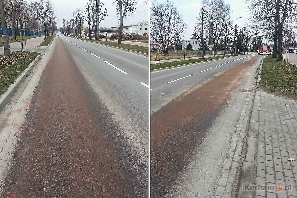 Wiadomość Śliska sprawa. Tysiąclecia zanieczyszczona olejemJadąca ulicą Tysiąclecia koparko-ładowarka zanieczyściła olejem znaczny odcinek drogi (27.02). Operatorowi maszyny uwagę zwrócili inni kierowcy. Strażacy zneutralizowali zagrożenie, a policja wystawiła mandat. Koparko-ładowarka jechała ulicą Tysiąclecia przed godz. 11.00. Poruszała się w stronę centrum miasta. Najprawdopodobniej w wyniku mechanicznego uszkodzenia z pojazdu wyciekał olej. Nieświadomy niczego kierowca został o tym fakcie poinformowany dopiero przez kierowców aut jadących za nim. Ulica została zanieczyszczona na odcinku kilkuset metrów - od huty szkła aż po szkołę "Mechanik". Olej został usunięty przez strażaków z komendy miejskiej Państwowej Straży Pożarnej w Krośnie. Użyto substancji, która pochłania zanieczyszczenia chemiczne - tzw. sorbent. Zanieczyszczenie było tak duże, że wykorzystano kilkanaście worków proszku. W akcji udział wzięły dwa zastępy straży. Policja wystawiła sprawcy mandat. Przez ponad godzinę policjanci kierowali też ruchem wahadłowym.