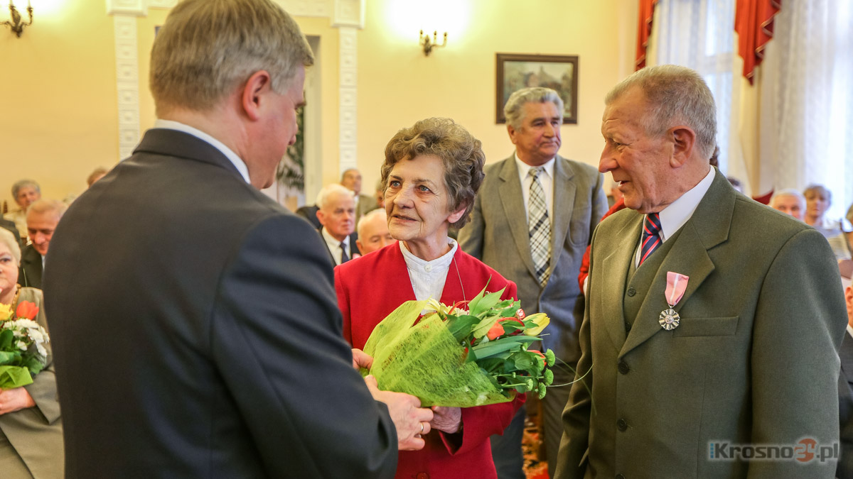 Wiadomość Pół wieku temu stanęli na ślubnym kobiercuMałżeństwo wówczas dobre i węzeł nie kruchy, gdy żona ślepa, a zaś mąż jest głuchy – słowa fraszki Magdaleny Samozwaniec przywołał jeden z małżonków, świętujących 50-lecie pożycia małżeńskiego. W piątek (11.04) Złote Gody obchodziło 50 par z Krosna. Zobacz film. 50 lat temu, 50 par z Krosna stanęło na ślubnym kobiercu. Z tej okazji w piątek (11.04) w Urzędzie Stanu Cywilnego odbyła się uroczystość wręczenia jubilatom Medali za Długoletnie Pożycie Małżeńskie. Przyznał je prezydent RP Bronisław Komorowski, a w jego imieniu wręczył prezydent Krosna – Piotr Przytocki. - 50 pierwszych spojrzeń, 50 pierwszych niewinnych pocałunków, 50 pierwszych randek, a każda inna. 100 różnych osobowości i charakterów, setki marzeń i planów, moc niepewności i wahań, tony optymizmu, niezmierzone ilości szczęścia. W sumie to 50 rożnych historii miłosnych, które pewnie mogłyby stanowić kanwę na scenariusz do niejednego filmu o miłości – mówiła do zgromadzonych Ewa Rajs, kierownik Urzędu Stanu Cywilnego w Krośnie. - Składam państwu serdeczne gratulacje z okazji Złotych Godów, życząc spełnienia marzeń, które tkwią gdzieś w głębi serca i które dotąd się nie spełniły i tych, które zrodzą się dopiero teraz, bo – drodzy jubilaci - nie mówię, że to już 50. rocznica ślubu, a to dopiero pierwsza 50. rocznica – więc jeszcze wiele przed wami. - Ten jubileusz jest wyrazem uznania dla państwa, wyraz docenienia państwa wysiłku 50-letniego tworzenia rodziny i budowania Polski, budowania Krosna. Dziękuję państwu, życzę dużo zdrowia, sił i wytrwałości w związku małżeńskim. Życzę tego z całego serca z nadzieją na spotkanie w następnym 50-leciu – dodał Piotr Przytocki. - Myślę, że jest nas za co nagrodzić, dobrze, że to zostało docenione, czujemy się bardzo zaszczyceni – w imieniu zgromadzonych mówił jeden z jubilatów. - My się dopiero doskonalimy. Pewna poetka tak to powiedziała: "Małżeństwo wtedy dobre i węzeł nie kruchy, gdy żona ślepa, a zaś mąż jest głuchy". A nam do tego jeszcze bardzo dużo brakuje - żartował. - Dobrze się w życiu składało, że mieliśmy zdrowe dzieci, że dobrze je wychowaliśmy, własny kąt wybudowaliśmy sobie – tak ostatnie 50 lat wspominają państwo Stefania i Marek Szarkowie. Mają swoją receptę na udane małżeństwo: - Chodzi o to, żeby na początku nie było całkiem odmiennych zdań, zamiłowań. Wspólne zainteresowania i wybaczanie drobnych rzeczy. (2014-04-14/15:00:38) |