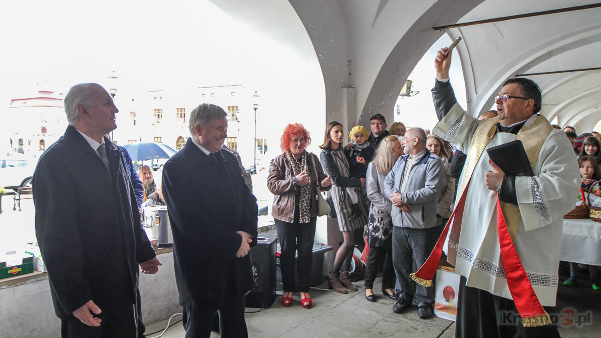 Wiadomość ''Wszystkich pokropiło?'', czyli święcenie na RynkuTo już kilkunastoletnia tradycja - mieszkańcy Krosna spotkali się (19.04) na Rynku na wspólnym, integracyjnym święceniu pokarmów wielkanocnych. Inicjatywę organizuje Unia Przedsiębiorczych i prezydent miasta. Zobacz film i zdjęcia. Przedpołudniowy niewielki opad deszczu zmusił organizatorów do zorganizowania święcenia na podcieniach krośnieńskiego Rynku, a nie na jego płycie. Punktualnie o 12.00 przybyło tu wielu krośnian. - Gromadzimy się przy wspólnym stole po to właśnie, aby radować się ze zmartwychwstania Chrystusa - mówił Krzysztof Janas, gwardian oo. franciszkanów. - Życzę Wam takich ludzkich, ważnych spraw, zdrowia, błogosławieństwa i wszelkiej pomyślności. Niech Chrystus zmartwychwstały Wam błogosławi. Życzenia mieszkańcom złożył tez prezydent miasta Piotr Przytocki: - Niech Chrystus zmartwychwstały daje wiele nadziei, wiele dobroci dla ludzi i wśród ludzi. Życzę udanych świąt, rodzinnych i spokojnych, radosnych, pełnych ciepła i słońca. Po uroczystym poświęceniu pokarmów zgromadzeni mieszkańcy składali sobie życzenia dzieląc się symbolicznie jajkiem, a zajączek wielkanocny rozdawał dzieciom słodycze. Organizatorzy wraz z Miejskim Ośrodkiem Pomocy Rodzinie przygotowali też paczki świąteczne dla osób najbardziej potrzebujących. - W tym roku rozdano 120 paczek żywnościowych - mówi Paweł Bachota, prezydent Unii Przedsiębiorczych. Tradycja wielkanocnych spotkań na Rynku rozpoczęła się 14 lat temu - w 2000 r. Unia Przedsiębiorczych organizuje też co roku wspólną wigilię na Boże Narodzenie. Galeria zdjęćKliknij na miniaturkę, aby zobaczyć zdjęcie w całości.