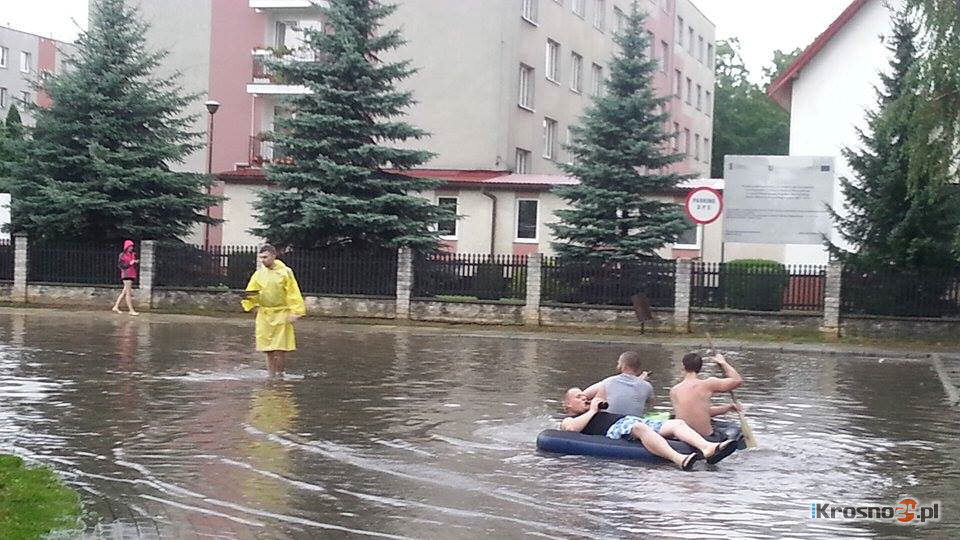 Wiadomość Po ulewie nad Krosnem. Zalane uliceOgromna ulewa przeszła we wtorek (29.07) w godzinach popołudniowych przez Krosno i okolice. Wiele ulic było zalanych i nieprzejezdnych, a kilka budynków podtopionych. Strażacy mieli pełne ręce roboty. Opady deszczu, które towarzyszyły burzom zaczęły się po godz. 13.00. Były tak intensywne, że ulicami natychmiast zaczęły płynąć potoki wody. Czytelnicy opowiadali nam telefonicznie na przykład o ulicy Blich: - Płynęła tam normalna rzeka! W pewnej chwili z nieba leciał nawet grad. Zalana była ulica Żwirki i Wigury - z osiedla trudno się było wydostać, na ulicach stało sporo wody. Pomysłowi młodzi ludzie zorganizowali sobie rozrywkę i pływali na materacu po osiedlowym jeziorze. Z piwnic bloków oraz z Domu Pomocy Społecznej strażacy wypompowywali wodę. Straż pożarna pracowała także w bibliotece pedagogicznej przy ul. Grodzkiej oraz w domu ludowym w Polance i wielu innych miejscach. Mocno zalane były ul. Kletówka i ul. Lotników. Wezbrały też wody w rzekach, ale ich poziom nie był alarmujący. Lokalne potoki zalały część ulic w Suchodole, tam też zanotowano podtopienia piwnic w wielu domach. Prosimy o przesyłanie zdjęć z zalanych miejsc: redakcja@krosno24.pl Więcej informacji i zdjęć wkrótce. (2014-07-29/16:28:24) |