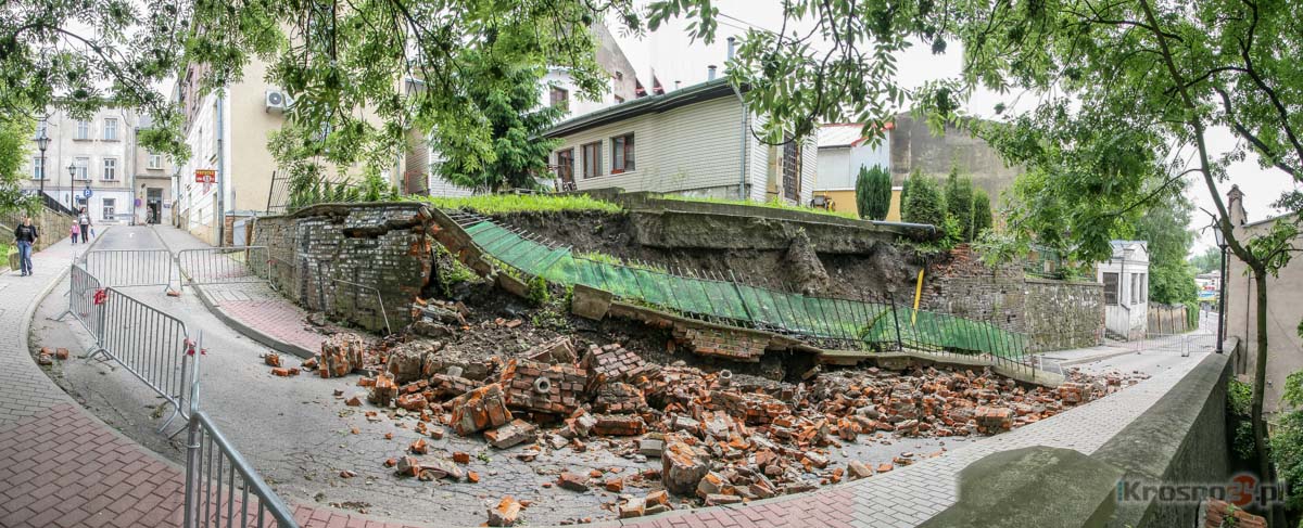 Wiadomość Zjazdowa bez przejazdu do połowy przyszłego rokuWe wtorek (23.09) rozpoczyna się zabezpieczanie osuwiska przy ul. Zjazdowej. Zakres prac obejmuje m.in. wykonanie nowego muru oporowego i wymianę nawierzchni drogi. Kierowców czekają utrudnienia, bo ulica będzie zamknięta dla ruchu do połowy przyszłego roku. ![]() Tymczasowe zabezpieczenie osuwiska przy ul. Zjazdowej wytrzymało 4 lata. Teraz zastąpi je mur oporowy Ceglany mur oporowy na ul. Zjazdowej runął podczas ulewnych deszczy w połowie maja 2010 r. Droga wyłączona została z ruchu na około miesiąc. W tym czasie wykonano prowizoryczne zabezpieczenie osuwiska, układając na wysokość muru siatkowe kosze wypełnione kamieniem. Wciąż brakowało jednak systemu odwodnienia oraz ujęcia wód opadowych. Spękana była także jezdnia, a chodnik po jej prawej stronie został wyłączony z ruchu pieszych, ze względu na ustawione na nim kosze. ![]() Zniszczony, ceglany mur runął w czasie ulewy w połowie maja 2010 r. Konstrukcja zawaliła się z wielkim hukiem, przypominającym grzmot Od wtorku (23.09) rozpoczynają się prace, które mają na celu odtworzenie muru oporowego oraz naprawienie jezdni. Ich zakres obejmuje kilka działań. - Musimy m.in. wybudować trzy konstrukcje oporowe, wykonać odpowiedni system kanalizacji oraz wymienić nawierzchnię drogi – wylicza Grzegorz Rachwał z PRIiD w Krośnie, spółki odpowiedzialnej za wykonanie prac. Ich koszt wyniesie ponad 3,3 mln zł, z czego 1,8 mln zł to dofinansowanie, które Urząd Miasta pozyskał z Ministerstwa Administracji i Cyfryzacji. (zdjęcie 360°)
