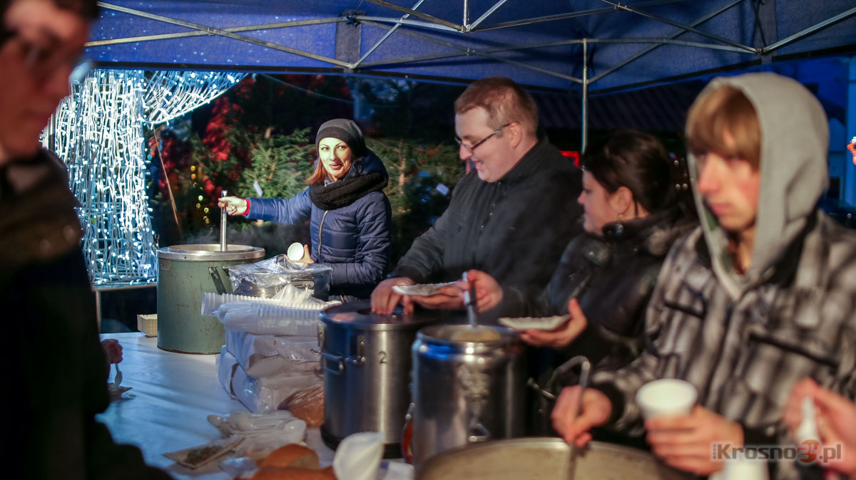 Wiadomość Świętowali już w sobotę. Wigilia na Rynku- Niech nowy rok będzie szczęśliwy dla Krosna i jego mieszkańców – to życzenie, które najczęściej padało podczas spotkania wigilijnego krośnian. Wspólne biesiadowanie i kolędowanie już po raz czternasty odbyło się na krośnieńskim Rynku. Zobacz zdjęcia i film. - To jest piękna polska tradycja i cieszę się, że włodarze miasta i przedsiębiorcy się tu gromadzą, aby wspólnie rozpocząć świętowanie od dzielenia się opłatkiem, ale także i pobyć ze sobą, pokolędować, poczęstować się daniami wigilijnymi – mówił ksiądz dziekan Andrzej Chmura - proboszcz fary. Już po raz czternasty na krośnieńskim Rynku odbyła się Wigilia. To spotkanie krośnian, na które co roku zapraszają członkowie Unii Przedsiębiorczych i włodarze miasta. - Nowo narodzony Chrystus pokazuje, że człowiekowi trzeba służyć. Dziś mamy dobry przykład, kiedy bogatsi wspomagają uboższych, kiedy dzielimy się wspólnie dobrem. Tak niech będzie w najbliższym roku 2015, aby ten rok był szczęśliwy dla Krosna, żeby nie brakło dobrych ludzi w naszym mieście, którzy wspierają się wzajemnie – mówił Piotr Przytocki, prezydent Krosna. - Pragnę złożyć państwu serdeczne, gorące życzenia świąteczne pogodnych, zdrowych, radosnych Świąt Bożego Narodzenia. Niech ten, który przyjdzie do nas, przyniesie nam radość i spokój, nadzieję i uśmiech, pogodę ducha i zrealizowanie wszystkich planów i marzeń. Aby nadchodzący nowy rok okazał się szczęśliwy dla wszystkich – życzył zgromadzonym Paweł Bachota, prezydent Unii Przedsiębiorczych. Po tradycyjnym opłatku, życzeniach, przyszła pora na poczęstunek. Specjalnie na tę okazję krośnieńscy restauratorzy przygotowali wigilijne potrawy, świąteczne smakołyki. Nie zabrakło pierogów, bigosu, ryby, grochówki, barszczu, gołąbków i słodkości. O wymiar duchowy spotkania zadbał ksiądz dziekan Andrzej Chmura: - Święta mają sens o ile świętujemy w duchu wiary i tradycji chrześcijańskiej. Bo to właśnie wspominamy - przyjście na ziemię Boga Człowieka. Wszystko co dodatkowe to służy podkreśleniu tej wielkiej uroczystości, tej wielkiej chwili. Niech Pan Bóg błogosławi miastu, włodarzom i wszystkim, którzy służą wspólnemu dobru, i nam, którzy stanowimy tę społeczność miasta Krosna oraz wszystkim gościom, którzy przebywają w Krośnie. Galeria zdjęćKliknij na miniaturkę, aby zobaczyć zdjęcie w całości.