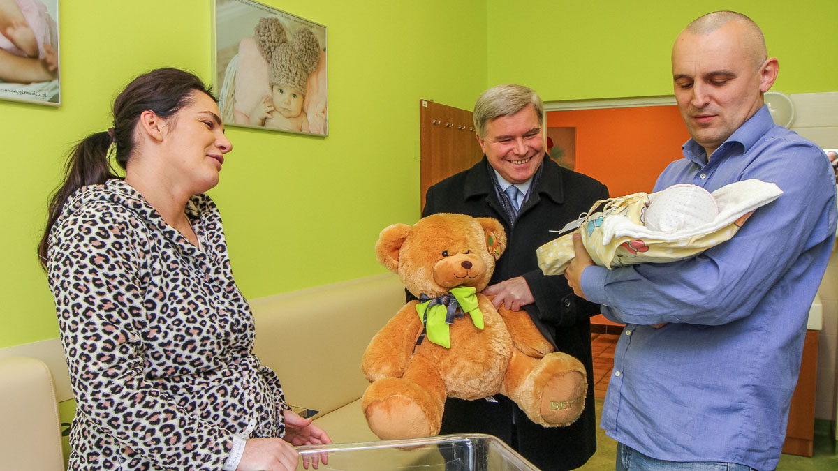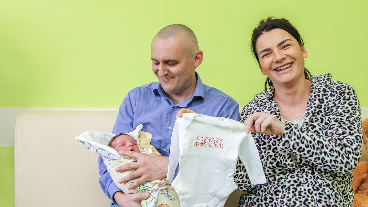 Wiadomość Znów chłopiec. Jaś pierwszym krośnianinemJan to pierwszy krośnianin, który przyszedł na świat w 2015 roku. Urodził się 2 stycznia w krośnieńskim szpitalu. Kontynuuje tradycję – już po raz ósmy pierwsze urodzone w nowym roku dziecko to chłopiec. Drugiego stycznia, trzydzieści minut po północy przyszedł na świat Jan - syn Anny Uliasz i Grzegorza Pleśniaka. Jest dużym i silnym chłopcem - ma 61 cm długości i waży 4250 g. - Jest bardzo grzeczny, je i śpi - mówi szczęśliwa mama. Jaś przyszedł na świat drogą naturalną bez komplikacji, choć jak przyznaje pani Anna – dosyć niespodziewanie: - Najpierw myślałam, że będą to okolice Wigilii, ale nic się nie wydarzyło. Miałam przyjechać do szpitala 5 stycznia. Nagle zaczęły się skurcze, w ciągu godziny dosyć silne, ale nie zdawałam sobie sprawy, że są to skurcze porodowe. Zadzwoniłam po taksówkę. Pan taksówkarz zobaczył, że kobieta w ciąży, o tej godzinie, zrobił oczy jak talerze i biegiem do tego szpitala – wspomina. Okazało się, że pośpiech był wskazany, bo gdy tylko przyjechali do szpitala, zaczęła się akcja porodowa. - Dzięki wsparciu położnych i pani doktor poszło gładko – wspomina mama. To nie pierwsza niespodzianka ze strony Jasia. Początkowo rodzice spodziewali się, że na świecie powitają dziewczynkę. - Na pierwszym USG wyszło, że miała być córka, ale potem okazało się, że jednak chłopak. Najważniejsze, że zdrowy – cieszy się tato. W domu na Jasia czeka dwóch starszych braci. Jaś jest pierwszym krośnianinem, ale nie pierwszym urodzonym w nowym roku dzieckiem. W krośnieńskim szpitalu nowy rok powitało troje noworodków. Pierwsza dziewczynka z Markuszowej przyszła na świat już minutę po północy, a kilka godzin później byli chłopcy: mieszkaniec Krościenka Wyżnego i Lubatowej. Tradycją jest, że pierwszego krośnianina w nowym roku wita prezydent Krosna Piotr Przytocki. Nie przyszedł do szpitala z pustą ręką - maluch i rodzice otrzymali talon na zakupy w wysokości 700 zł, kwiaty, misia na szczęście oraz jedyne w swoim rodzaju ubranko z napisem „Pierwszy Krośnianin”. W minionym roku w krośnieńskim szpitalu urodziło się 1184 dzieci i jest to liczba porównywalna z poprzednimi latami. Jaś kontynuuje tradycję pierwszych chłopców w nowym roku i dołącza do grona swoich kolegów z siedmiu ostatnich lat: 2008 – Krzysztof Kosowski, 2009 – Adrian Fejkiel, 2010 – Szymon Malec, 2011 – Michał Przepióra, 2012 – Wiktor Włodarski, 2013 – Oliwier Radulj, 2014 – Jakub Podlaszewski. (2015-01-04/10:56:41) |