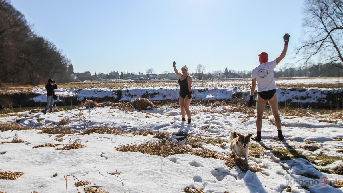 Wiadomość Zimowa kąpiel w Wisłoku? Dla nich to pestkaPierwszą barierą jest wejście do wody po pas. Drugą – zanurzenie w niej piersi. Nie jest to łatwe, bo Wisłok ma o tej porze roku temperaturę kilku stopni. Krośnieńskie morsy przekonują jednak, że zimowa kąpiel to same korzyści. Zobacz film. Są małżeństwem spod Krosna: on (Kazimierz Antkiewicz, emerytowany górnik) morsuje od 13 lat, ona (Renata Antkiewicz, pracuje w firmie wiertniczej) zaczęła morsować w grudniu 2014 roku. Morsować, czyli kąpać się zimą w lodowatej wodzie: w morzu, w rzecze lub w jeziorze. W lutym założyli w Krośnie klub morsa. Morsują w niedzielne poranki, o godz. 10.00, w Wisłoku, a dokładnie w jego zakolu: skręcasz z ul. Bursaki w drogę prowadzącą do krytych kortów tenisowych, mijasz zielone hale namiotowe, idziesz dalej polną dróżką i po 150 metrach jesteś na tzw. "Sztukach". Początki On: – Wciągnął mnie w to kolega. Miałem zmiany reumatyczne, haluksy na palcach mi się porobiły. Kolega powiedział mi: "Kazik, spróbuj morsowania." Pokazał mi kobietę, która miała przykurcz starczy i chodziła przygarbiona. Zaczęła morsować i po 2 tygodniach biegała już truchcikiem. W tej chwili ma pod osiemdziesiątkę i chodzi prościutko. Ona: – Ja jestem początkująca. Długo się nastrajałam, stawiałam opory, nawet ostre, ale się w końcu zdecydowałam i od tego sezonu zaczęłam. Cały grudzień w Bałtyku morsowałam, 18 razy, strasznie mi się to spodobało i tak sobie pomyślałam, że niepotrzebnie się wzbraniałam, bo tyle czasu straciłam. Przeciwwskazania On: – Jedynym przeciwwskazaniem jest wada serca, innych właściwie nie ma. No może poza zmianami skórnymi, bo one siłą rzeczy uniemożliwiają kąpiel. Z tym sercem to dlatego, że w momencie wejścia do wody akcja serca przyspiesza, organizm jest w stresie. Pogoda On: – Dobra pogoda do morsowania to pogoda bez wiatru. Przy wietrze ciało szybko się wychładza. Ale kąpałem się w różnych warunkach. Raz, na Śląsku, był mróz -27 stopni i śnieg po kolana. Innym razem morsowałem w Bałtyku. Woda miała -1,5 stopnia. Dziś (niedziela, 15.02 – jest słonecznie, kilka stopni na plusie), można powiedzieć, że mamy upał jak w Kenii. Ona: – Tylko słoni brak. Sezon On: – Przyjmuje się, że sezon trwa od 15 listopada do 15 kwietnia. Pół roku. Rozgrzewka On: – Zanim wejdziemy do wody, musimy rozgrzać ciało.