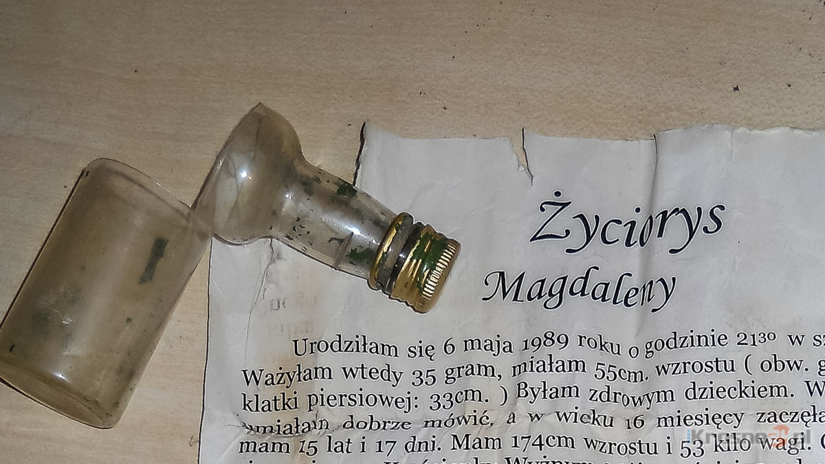 Wiadomość List w butelce dopłynął z Krosna do... PrzemyślaW 2004 roku 15-letnia Magda spod Krosna wrzuciła do Wisłoka list w butelce. Wierzyła, że dopłynie aż do morza. Zamiast na plaży, przesyłka po siedmiu latach znaleziona została pod Przemyślem. Po czterech kolejnych "odbiorczyni" listu odszukała jego autorkę. Maj 2004 Tamtego momentu Magda dokładnie nie pamięta. Jest jednak przekonana, że to musiało być po powrocie ze szkoły i chyba pod wpływem filmu "List w butelce" z Kevinem Costnerem i Robin Wright. Usiadła przy biurku, włączyła komputer i zaczęła pisać swój życiorys. "Urodziłam się 6 maja 1989 roku o godzinie 21.30 w szpitalu w Krośnie" - wystukała pierwsze zdanie. W kolejnych opisała swoje wczesne dzieciństwo oraz ówczesną rzeczywistość: codzienne zajęcia, problemy, zainteresowania, marzenia i plany. Na koniec wspomniała o swojej rodzinie oraz zapewniła, że na pomysł napisania życiorysu wpadła sama. Koleżanka Paulina sprawdziła ortografię - nie wypadało przecież, aby list w butelce zawierał byki! Życiorys, wraz ze zdjęciem, włożyła do plastikowej buteleczki, którą nie ma pojęcia skąd wzięła. Dla uwiarygodnienia daty powstania listu dołączyła dwa bilety miesięczne oraz legitymację Ligi Ochrony Przyrody. Zakręciła. Tego czy list znalazł się w rzece jeszcze w tym samym dniu Magda nie jest pewna. Raczej tak. Niemal pewna jest natomiast tego, że wrzuciła ją do Wisłoka. Musiało się jej wydawać, że ktoś znajdzie go za jakieś sto lat, że na brzeg wyrzucą butelkę morskie fale i że będzie to historia, która zelektryzuje jej potomków. Lato 2011 Pamela (wówczas 15-latka): - Mieszkam w Kuńkowcach koło Przemyśla. Mój dom znajduje się jakieś 50 metrów od koryta Sanu. Od dziecka chodzę nad rzekę niemal codziennie. Pamiętam, że tamtego dnia poszłam nad nią z kuzynką, ale nie wiem czy to był po prostu spacer czy jakaś zabawa. Na pewno było to niedługo po tym jak San wylał. Na brzegu i na gałęziach krzaków znajdowało się mnóstwo śmieci. Zobaczyłam wśród nich tę butelkę i zauważyłam, że w jej środku coś było. Odkręciłam. Zawartość była wilgotna i jej wyciągnięcie przez szyjkę okazało się niemożliwe. Przecięłam więc butelkę i wydobyłam list. Był nieczytelny. Zostawiłam go, aby wysechł. Po kilku godzinach mogłam go już odczytać. Jeszcze tego samego dnia zaczęłam szukać Magdy. Napisałam na Facebooku do kilkunastu dziewczyn o tym imieniu z Krosna i okolic. Napisałam do tych, których wiek się zgadzał. Nie dostałam jednak żadnej odpowiedzi. Butelkę oraz zawartość schowałam do pudła i o nich zapomniałam. Magda: - Dostałam tamtą wiadomość. To był okres, kiedy miałam niespełna półroczne dziecko i mnóstwo spraw na głowie, dlatego mignęła mi ona tylko przed oczami. Poza tym kompletnie nie pamiętałam, że napisałam taki list. Uznałam, że to jakiś absurd i zignorowałam sprawę. ![]() Koryto Sanu w Kuńkowcach pod Przemyślem - choć w normalnych warunkach było to niemożliwe, to właśnie tu rzeka wyrzuciła na brzeg butelkę z listem Czerwiec 2015 Z forum internetowego (wątek: "List w butelce!", 15 stron dyskusji): Yomixx3 (Pamela): - Cześć dziewczyny! Pare lat temu znalazłam nad rzeką list w butelce. Był w nim życiorys dziewczyny, zdjęcie oraz legitymacja Ligi Ochrony Przyrody. Grzebałam dzisiaj w starych rzeczach i go znalazłam. Jak myślicie, odnaleźć dziewczynę i napisać jej o tym, czy po prostu to zostawić? Emx3: - Zawsze chciałam znaleźć list w butelce... Pisz, pisz! Myfashion13: - Myślałam, że takie rzeczy tylko w filmach, ale ta liga ochrony nijak ma się do butelki wrzuconej do rzeki. Szukaj, choćby po to, by wytłumaczyć, gdzie wyrzuca się butelki! Minami: - Hej. Akurat tak sie składa, że mam chłopaka z Miejsca Piastowego. Mamy dużo znajomych w przedziale 22-25 lat wiec postaram się ich użyć do rozwiązania tej historii. (...) Minami: - Dziewczyny! Nasze znajome, a zwłaszcza jedna, zafascynowała się historią i działa. Kojarzy dziewczynę, ale na chwilę obecną nie ma z nią kontaktu. Właśnie napisała do innej znajomej, która prawdopodobnie była z nią w klasie. Czekam z motylami w brzuchu na odzew. (...) Yomiix3: - Jeśli nie znajdę jej do końca tygodnia, pewnie wyślę list na podany w życiorysie adres, może jej rodzice go odbiorą. Minami: - Dziewczyny, mam numer do tej Magdy! (...) Odnaleziona (Magda): - Pierwszy tydzień po urlopie, masa pracy, ogrom zaległości i jeszcze mój zmiennik wziął dziś wolne by pochodzić po lekarzach, siedzę sobie, a raczej latam próbując ogarnąć, co tylko się da. Wtem, ni stąd ni zowąd odzywa się do mnie na FB dziewczyna, którą kojarzę z gimnazjum - chodziła do równoległej klasy. I pisze jak byk, że ktoś mnie szuka, bo znalazł mój list w butelce. Pierwsza myśl? Pochorowała się dziewczyna i nie wie co pisze, biedna. Za kilka sekund wysyła zdjęcie listu, biletów, butelki. A moja szczęka opada, opada i opada. Czytam to forum i normalnie mi się oczy spociły. Chciałabym, żeby wszyscy wybaczyli mi zaśmiecanie środowiska - wiem, paradoks Liga Ochrony Przyrody i butelka do rzeki. Wybaczcie, ale przypomnijcie sobie, na pewno zdarzyło wam się zrobić kiedyś jakąś głupotę... Mam nadzieję, że skontaktuję się jakoś z dziewczyną, która odnalazła list i zainteresowała się nim. Ktoś tam napisał, że niby o czym miałybyśmy rozmawiać? Hmm, myślę sobie, że skoro ktoś to odnalazł i podjął jakiekolwiek działania, by mnie odnaleźć, to musi być tak samo zakręcony jak ja, więc na pewno znajdziemy jakiś temat. Yomiix3: - Jeśli chodzi o mnie, to cała ta sytuacja jest dla mnie wyjątkowa. Takie rzeczy nie zdarzają się zbyt często, wręcz przeciwnie. Więc jest w tym coś niesamowitego. Lipiec 2015 Większość marzeń i planów opisanych 11 lat temu przez Magdę spełniła się. W pie