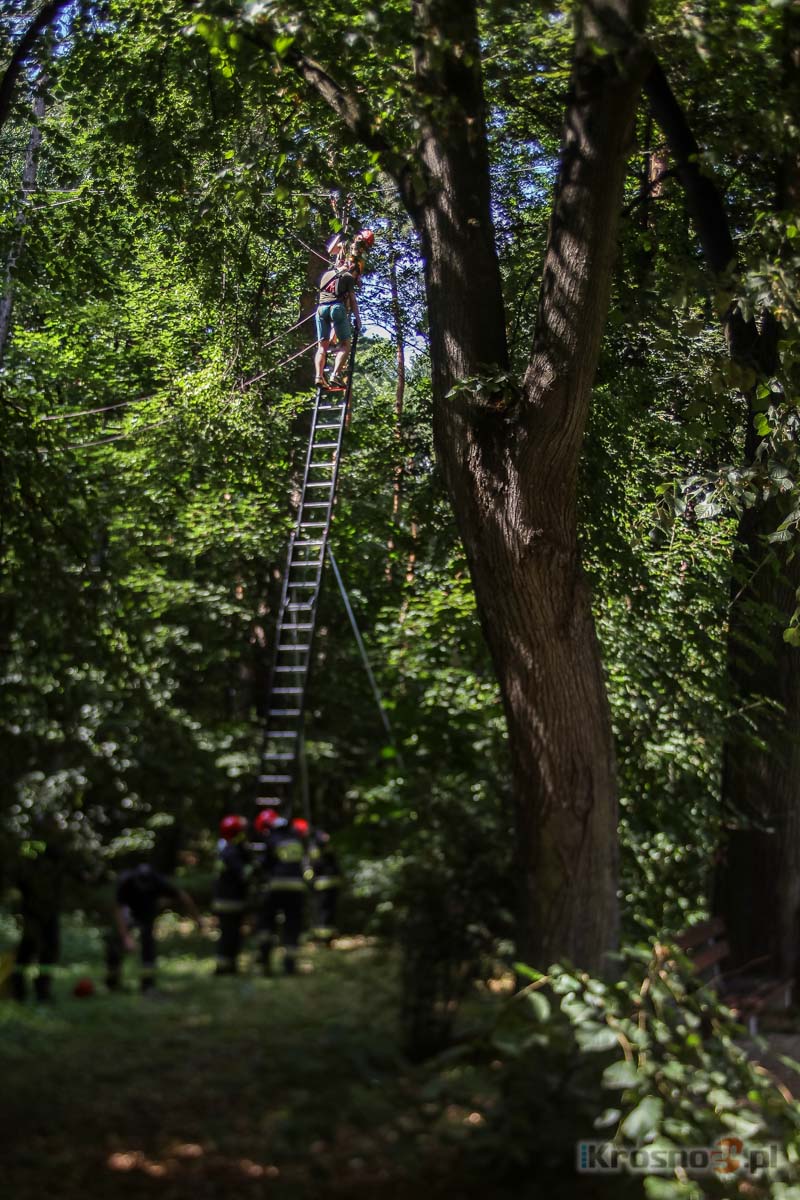 Wiadomość Karabińczyk zamiast rolki, panika zamiast spokojuZ powodu błędnego zapięcia sprzętu, we wtorek (21.07) na jednej z tras w parku linowym na Zawodziu ugrzązł 24-latek. Uwolnili go strażacy. Obsługa parku jest pewna, że gdyby mężczyzna nie spanikował, udałoby się go ściągnąć bez pomocy straży. Spanikować zaś miał z powodu... lęku wysokości. Zobacz film z akcji. ![]() Po raz pierwszy w kilkuletniej historii parku linowego, uwięzioną na trasie osobę ściągać musieli strażacy - Gdy usłyszałam zbliżającą się straż, pomyślałam, że gdzieś niedaleko się pali. Nie przypuszczałam, że jadą do nas, żeby ściągać z trasy mężczyznę - opowiada Małgorzata Wolanin, kierowniczka Linowego Parku Przygody na Zawodziu. Przyjazd straży zaskoczył ją dlatego, że obsługa parku niemal codziennie ściąga kogoś z trasy: jedni przeszacowują swoje siły, inni w jakiś sposób się zaplątują. Instruktorzy uwalniają ich szybko i bez większych problemów. - Nie ma takiego miejsca, w którym nie bylibyśmy w stanie pomóc uwięzionej osobie - zapewnia kierowniczka. I dodaje: - Trzeba jednak współpracować z instruktorami, słuchać ich poleceń i nie panikować, a w tym przypadku tego zabrakło. Zimnej krwi zabraknąć miało 24-letniemu mężczyźnie, który we wtorek popołudniu (21.07), wraz z dwiema innymi osobami, zdecydował się przejść trasę oznaczoną kolorem pomarańczowym. To najdłuższa trasa w parku: ma około 320 metrów długości i spory stopień trudności. Na śmiałków czekają bowiem liczne przeszkody: drabinki, strzemiona, kładki czy pętelki. Ma też atrakcję, dzięki której owych śmiałków nie brakuje - znajdujący się pod koniec trasy zjazd (tzw. tyrolka) o długości prawie 120 metrów. Teoretycznie to najprzyjemniejszy i najłatwiejszy odcinek "pomarańczu": stajesz na podeście, zapinasz na linę rolkę, za nią karabińczyk i przez kilka sekund zjeżdżasz na wysokości około 10 metrów. Niestety, zanim 24-latek rozpoczął zjazd, popełnił błąd. - Mężczyzna zapiął sprzęt odwrotnie: najpierw zapiął karabińczyk, dlatego gdy zaczął zjeżdżać, ten zablokował rolkę. Siłą rozpędu chłopak pokonał nieco ponad połowę trasy, a potem się zatrzymał, zawisł i zaczął wzywać pomocy - tłumaczy Małgorzata Wolanin. ![]() Problemy 24-latka zaczęły się w momencie, gdy na jednym z podestów odwrotnie zapiął system asekuracji Usłyszała go instruktorka. Zbiegła zobaczyć, co się stało, a następnie ruszyła z pomocą. - Dotarcie do niego zajęło mi może dwie minuty - opowiada. - Przywiązałam się specjalną liną do drzewa i zjechałam do miejsca, w którym był. Chciałam go przyciągnąć do podestu i tam, na specjalnym sprzęcie, opuścić go na ziemię. Zapięłam jego uprząż do mojej i zaczęłam ciągnąć. Gdy byliśmy już dosłownie o krok od platformy, tak, że prawie mogłam postawić nogę, zaczął "podskakiwać", przez co zjechaliśmy ponownie na środek tyrolki. Spróbowała jeszcze raz, ale efekt był identyczny: tuż przed platformą nerwowe ruchy mężczyzny ściągnęły ich z powrotem w to samo miejsce. - Uwierała go uprząż. Pewnie dlatego, myśląc, że sobie ulży, podskakiwał. Rezultat był taki, że ona wżynała się jeszcze bardziej - opisuje instruktorka. Przed trzecim podejściem usłyszała, że jedzie straż. Nie próbowała więc dalej. Straż wezwana została przez kobietę, która była w parku. - On od początku krzyczał, aby wezwać strażaków. Nie czekał na naszą pomoc - twierdzi obsługa. Dalszy przebieg zdarzeń relacjonuje bryg. Mariusz Kozak, oficer prasowy PSP w Krośnie: - Naszym pierwszym działaniem było podstawienie drabiny pożarniczej pod uwięzioną osobę, tak aby mogła stanąć na jej szczeblach i zwolnić nacisk wywierany przez jego ciało. Na drabinie stanęła również instruktorka. Przy pomocy tyczki przerzucono linkę zabezpieczającą przez liny trasy, którą instruktorka zabezpieczyła uwięzionego mężczyznę. Następnie, nożem otrzymanym od strażaków, odcięła go od linek nośnych trasy. Asekurowany przez strażaków na lince zabezpieczającej, zszedł samodzielnie po drabinie na ziemię, gdzie został zaopatrzony przez zespół ratownictwa medycznego. Obsługa parku jest przekonana, że gdyby nie panika, w którą wpadł mężczyzna, akcja służb ratowniczych nie byłaby konieczna. Do całej historii dodaje jeszcze jeden, chyba kluczowy szczegół: - Już na początku trasy ten mężczyzna przyznał się, że ma lęk wysokości. Nakłanialiśmy go, aby zszedł, ale odmówił. Powiedział, że da radę ją pokonać. (2015-07-22/18:02:20) |