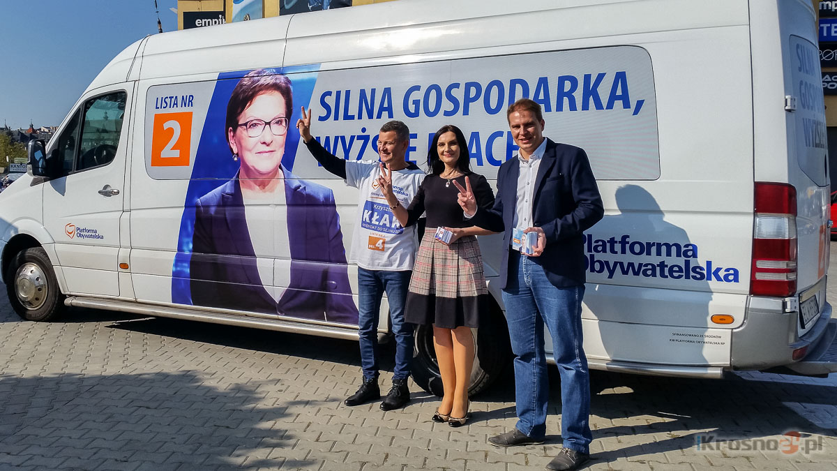 Wiadomość Ewavan w Krośnie. Kandydaci Platformy zaskoczeniDo Krosna przyjechał (8.10) Ewavan, czyli jeden z pojazdów, który objeżdża Polskę z kandydatami Platformy Obywatelskiej do sejmu. Kandydaci byli zaskoczeni... pozytywnym przyjęciem przez mieszkańców. ![]() Kandydaci Platformy Obywatelskiej do sejmu (od lewej): Krzysztof Kłak, Joanna Frydrych, Sławomir Miklicz Około godz. 12.00 Ewavan podjechał pod galerię EliJot. Z vana obklejonego wizerunkiem premier Ewy Kopacz i hasłem „Silna gospodarka, wyższe płace” wysiedli kandydaci do sejmu z krośnieńsko-przemyskiego okręgu wyborczego: Joanna Frydrych z Targowisk, Sławomir Miklicz z Sanoka oraz Krzysztof Kłak z Przeworska. Wraz z nimi przyjechali młodzi wolontariusze, którzy rozdawali przechodniom cukierki. Sami kandydaci rozmawiali z ludźmi i przekazywali ulotki. - Jestem bardzo mile zaskoczony przyjęciem nas przez mieszkańców Krosna. Zdecydowana większość osób była do nas pozytywnie nastawiona. Oczywiście, nie wszyscy deklarowali się, że będą głosować na Platformę Obywatelską. Jak to jest w społeczeństwie - każdy ma swoje sympatie. Ale były nawet panie, które chciały sobie zrobić zdjęcia z kandydatami. To jest miłe. Zaskoczony byłem, bo spodziewałem się trudniejszych rozmów – opowiadał Sławomir Miklicz, który spacerował przy galeriach oraz na targowicy. Joanna Frydrych potwierdza: - Bardzo się cieszymy, że ludzie biorą ulotki i pozytywnie reagują. Dlaczego mieszkańcy Krosna powinni oddać głos na PO? Kandydaci przekonywali, że rządy Platformy zapewniają stabilny rozwój całego kraju. - Przypominamy o tym co udało się zrobić, bo ludzie bardzo szybko przyzwyczają się do tego, co jest. Chociażby drogi - w Krośnie to rozbudowa obwodnicy, jedna z największych inwestycji. Powstaje obwodnica w Brzozowie, w Sanoku. Droga S19 do Barwinka jest w trakcie przygotowywania, udało się już rozstrzygnąć przetargi. To prawda, że nie wszystko się udało zrealizować, natomiast trzeba pamiętać w jakim kryzysie była Europa. Nasza gospodarka ma się dobrze - ostatnie dane GUS-u mówią o poziomie bezrobocia poniżej 10%. W okresie kolejnych rządów PO zwykli ludzie mają odczuć zmiany we własnej kieszeni w postaci wyższych płac – mówili kandydaci Platformy Obywatelskiej. Ewavan tego samego dnia objechał jeszcze Sanok, Brzozów i Jasło. (2015-10-08/19:22:03) |