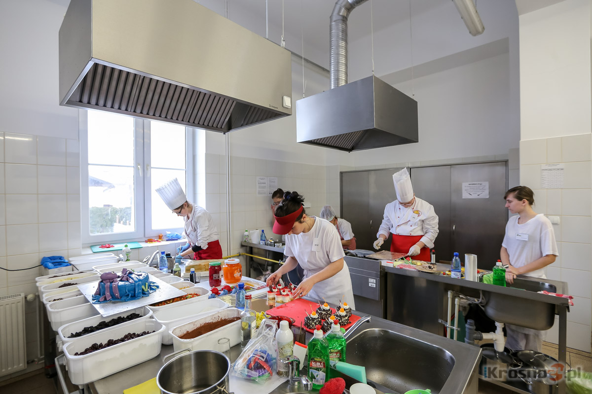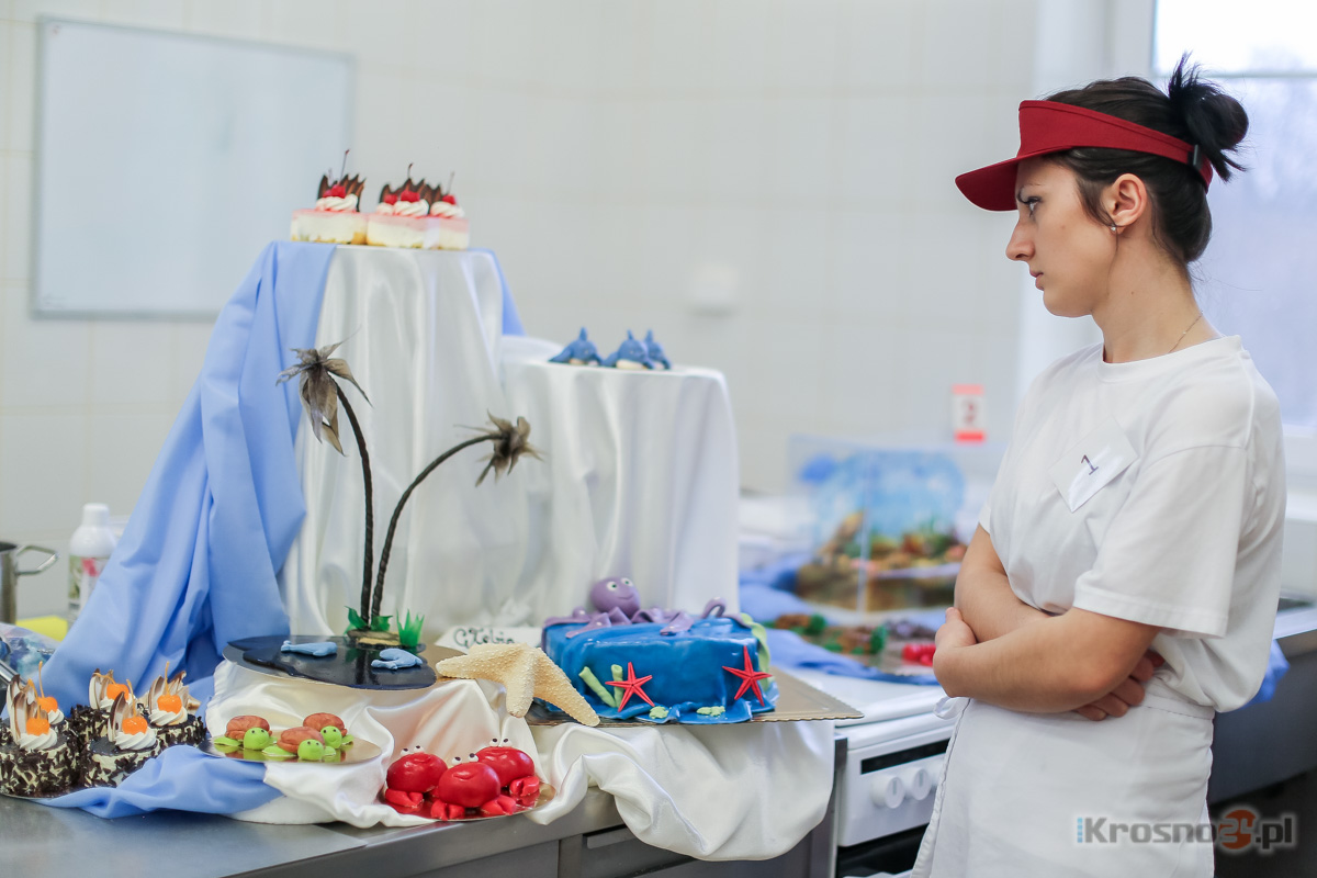 Wiadomość Młodzi cukiernicy zajrzeli w głąb oceanuTorty w kształcie statku i dna morskiego oraz delfiny i kraby z masy marcepanowej - m. in. takie słodkości powstały w czasie 13. Wojewódzkiego Turnieju o Tytuł Najlepszego Ucznia w Zawodzie Cukiernik, który odbył się w środę (27.01) w ZSP nr 2 w Krośnie. Bardzo dobrze wypadły w nim uczennice z Krosna. Zajęły II i III miejsce. Do wojewódzkiego etapu turnieju przystąpiło siedmioro uczniów wyłonionych w eliminacjach szkolnych: po dwie osoby z Krosna (ZSP nr 2) i Rzeszowa oraz po jednej z Dębicy, Jasła i Pilzna. - To trochę mniejsza liczba uczestników niż zwykle, ponieważ na tym etapie jest ich z reguły około dziesięciu. Niestety, coraz trudniej zachęcić młodych ludzi, aby szkolili się w tym zawodzie - przyznała Ewa Starowiejska, dyrektor ZSP nr 2 w Krośnie, która wspólnie z Cukiernią Jagusia zorganizowała turniej. Rywalizacja podzielona była na dwie części: teoretyczną i praktyczną. Godzinny sprawdzian z teorii obejmował pytania m.in. z zakresu technologii cukierniczej oraz bezpieczeństwa i higieny pracy. - Teoria ma ogromne znaczenie, bo nawet jeśli ktoś ma duże umiejętności praktyczne, ale słabo wypadnie w teorii, to bardzo ciężko będzie mu osiągnąć wysoki wynik ogólny. Przede wszystkim jednak jej znajomość jest niezbędna w przyszłej pracy, bo tylko dzięki niej można wyeliminować ewentualne błędy w sztuce - podkreślała Elżbieta Jaracz, członkini komisji konkursowej, nauczycielka zawodu w ZSP nr 2. W trwającej pięć godzin części praktycznej zadaniem uczestników było wykonanie tortu (uczniowie mogli skorzystać z gotowych blatów tortowych oraz podstawowego kremu), dziewięciu figurek z masy marcepanowej oraz eksponatu lub elementu dekoracyjnego z karmelu lub czekolady. Musieli także udekorować dziesięć ciasteczek bankietowych. Zgodnie z regulaminem, w słodkościach, w ich formie lub dekoracji, powinni byli zakląć temat przewodni tegorocznego turnieju - głębię oceanu. Fale, ośmiornice, ryby, syrenki, delfiny, kraby, żółwie, muszle i rafy - to motywy, po które sięgnęli uczniowie. - Poziom jest wysoki - komentowali w trakcie rywalizacji członkowie komisji konkursowej, którzy po upływie pięciu godzin przystąpili do oceny prac. Co brano pod uwagę w czasie oceny? - Organizacja i higiena pracy, zgodność z tematem, wykonanie każdego z elementów – pomysłowość, technologia i estetyka - oraz prezentacja - wyliczała Elżbieta Jaracz. - Każdy z siedmiu członków komisji przyznaje punkty, z których potem wyciągana jest średnia. Na końcu dodajemy wyniki z teorii i sumujemy punkty. Podobnie jak w poprzednich latach, ocenie nie podlegał smak. Ten element nie jest sprawdzany nawet na szczeblu ogólnopolskim. ![]() Słodka głębia oceanu według Magdaleny Gierlasińskiej, uczennicy ZSP nr 2 w Krośnie, zdobywczyni III miejsca Wojewódzki etap turnieju wygrał Bartosz Dudek, uczeń Zespołu Szkół Spożywczy w Rzeszowie. Kolejne miejsca na podium przypadły reprezentantkom Krosna, uczennicom ZSP nr 2 - Małgorzacie Grzesik (II miejsce) oraz Magdalenie Gierlasińskiej (III miejsce). - Ten wynik to duży sukces szkoły - cieszy się Ewa Starowiejska, dodając jednocześnie, że o zwycięstwie zadecydowała teoria. - Bartek zdecydowanie najlepiej napisał test. Gosia była lepsza w części praktycznej. Gdyby brać pod uwagę tylko praktykę, kolejność byłaby odwrotna. ![]() Ewa Starowiejska, dyrektor ZSP nr 2 w Krośnie, od kilku lat obserwuje spadek zainteresowania zawodem cukiernika. - Szkoda, bo kończąc taki kierunek ma się fach w ręku - mówi Zarówno Bartosz jak i Małgorzata zdobyli ponad 80% punktów, przekraczając tym samym próg niezbędny do zakwalifikowania się do ogólnopolskiego etapu turnieju, który odbędzie się we Wrocławiu. Galeria zdjęćKliknij na miniaturkę, aby zobaczyć zdjęcie w całości.